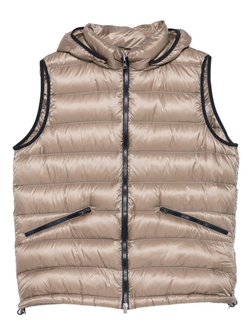 hooded padded gilet Highlights - Beige - Padded design - Hooded neckline - Zip fastening - Welt pockets - Sleeveless Imported Composition Outer: Polyamide 100% Lining: Polyamide 100%, Goose Down 90%, Down 10% SIZE & FIT Model measurements Height 6 ft 1 in(1.85 m) Bust/Chest 35.82 in(91 cm) Hips 37.79 in(96 cm) Waist 29.13 in(74 cm) Washing instructions Hand Wash