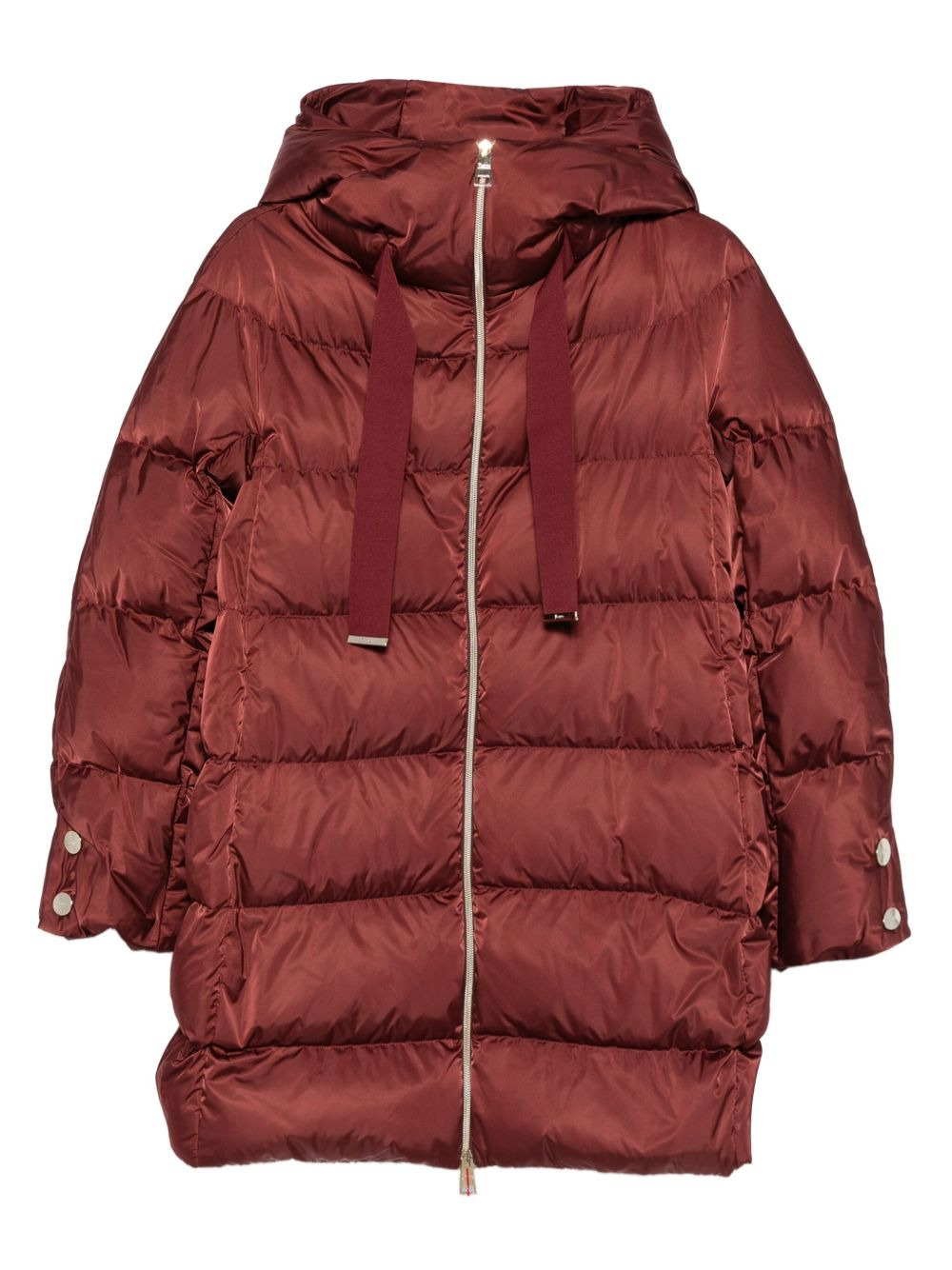 hooded quilted coat Highlights - Burgundy - Quilted design - Drawstring hood - Long sleeves - Zip fastening Imported Composition Outer: Polyester 100% Lining: Polyamide 100%, Down 80%, Feather 20% SIZE & FIT Model measurements Height 5 ft 10 in(1.78 m) Bust/Chest 31.49 in(80 cm) Hips 37 in(94 cm) Waist 23.62 in(60 cm) Washing instructions Read Manufacturer Guidelines