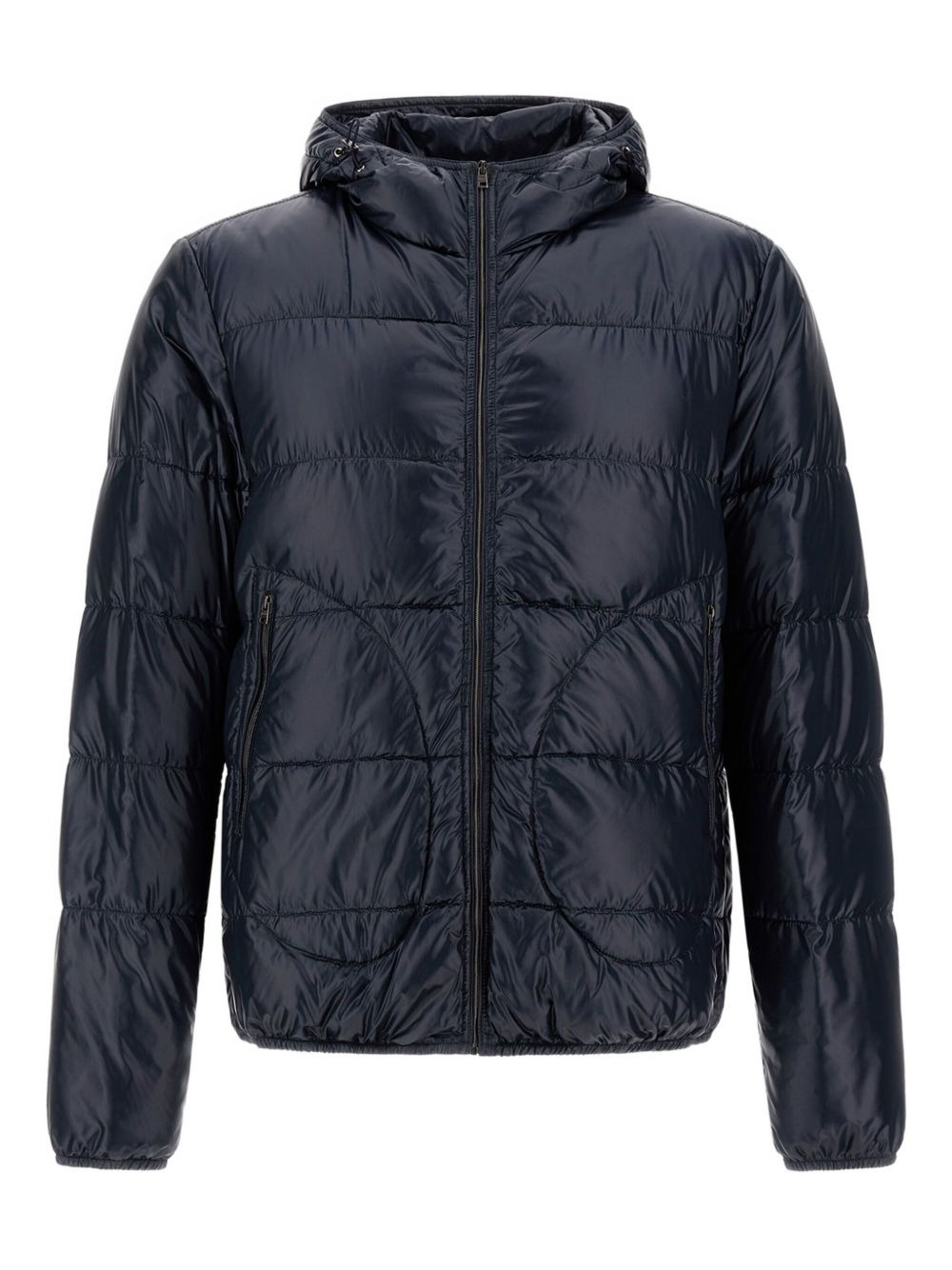 hooded-quilted jacket Highlights - Navy blue - Quilted design - Hooded neckline - Zip fastening - Welt pockets - Long sleeves Imported Composition Outer: Polyamide 100% Lining: Polyamide 100%, Down 90%, Feather 10% Washing instructions Read Manufacturer Guidelines