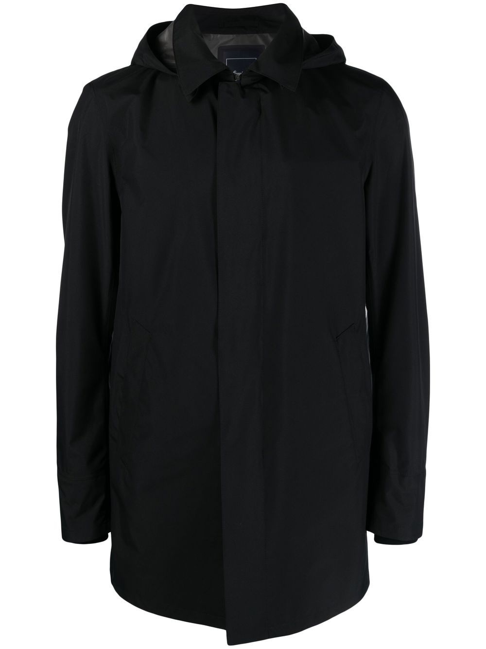 hooded raincoat Highlights - Black - Waterproof - Storm flap - Classic hood - Classic collar - Two side slash pockets - Rear slit - Straight hem Imported Composition Polyester 100%, Polytetrafluoroethylene (PTFE) 100%, Polyamide 72%, Spandex/Elastane 28% SIZE & FIT Measurement CHEST 47.24 in(120 cm) SLEEVE LENGTH 27.55 in(70 cm) LENGTH 34.64 in(88 cm) WAIST 46.45 in(118 cm) Washing instructions Hand Wash
