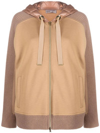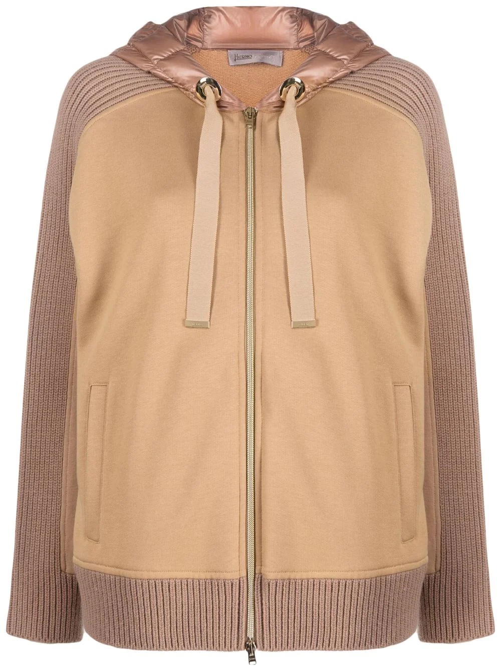 hooded zip-up jacket Spun from wool and cotton with a panelled design, Herno's zip-up jacket boasts a ribbed-knit construction. The piece is finished with a feather-filled drawstring hood. Imported Composition Outer: Wool 100%, Cotton 100%, Polyamide 100% Lining: Feather Down 100% SIZE & FIT Model measurements Height 5 ft 10 in(1.78 m) Bust/Chest 31.49 in(80 cm) Hips 35.43 in(90 cm) Waist 24.4 in(62 cm) FittingInformation This piece fits true to size. We recommend you get your regular size Cut for a loose fit Made with a mid-weight fabric Washing instructions Dry Clean Only