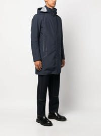 Laminar reversible coat Highlights - Navy blue - Down-feather filling - Reversible - Slouchy hood - High neck - Concealed front fastening - Long sleeves - Two zip-fastening pockets Imported Composition Polyamide 100% Lining: Feather Down 100% SIZE & FIT Model measurements Height 6 ft 2 in(1.87 m) Bust/Chest 38.18 in(97 cm) Hips 36.61 in(93 cm) Waist 29.13 in(74 cm) Measurement CHEST 46.06 in(117 cm) SLEEVE LENGTH 33.85 in(86 cm) WAIST 48.42 in(123 cm) FittingInformation Designed for a slim fit, offering a comfortable fit that sits just away from the body The detachable panel offers the preference for a different fit Made from a padded non-stretch fabric, giving it no natural elasticity This piece fits true to size – take your usual size Washing instructions Hand Wash