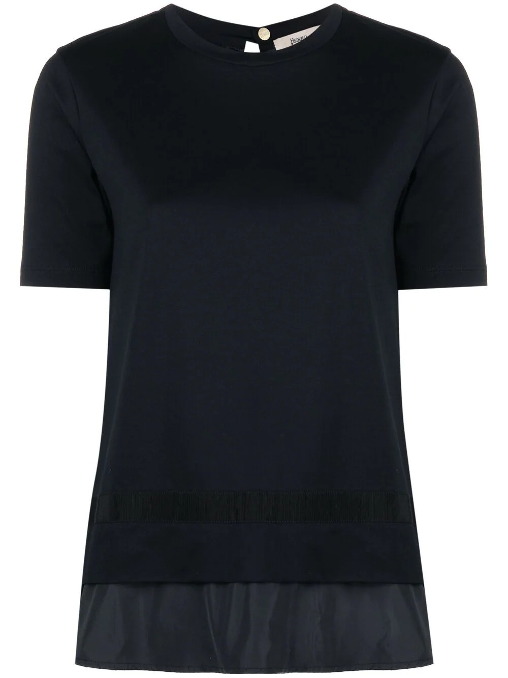 layered short-sleeve cotton top More than your average black-tee, this Herno top is just what's needed for broadening your minimalistic know-how horizons. Its contrast trim and cotton construction score it top marks for everyday wardrobe success. Imported Composition Cotton 100%, Polyester 100% SIZE & FIT Model measurements Height 5 ft 10 in(1.78 m) Bust/Chest 32.28 in(82 cm) Hips 35.82 in(91 cm) Waist 24.8 in(63 cm) FittingInformation This piece fits true to size. We recommend you get your regular size Cut for a loose fit Made with a mid-weight fabric Washing instructions Machine Wash