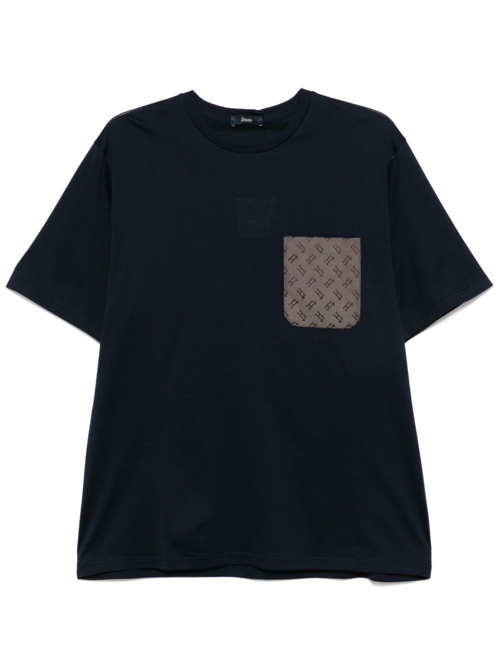 logo-embroidered T-shirt Highlights - Oxford blue/olive brown - Cotton - Lightweight jersey - Ribbed trim - Crew neck - Short sleeves - Embroidered logo at the chest - Chest patch pocket - Straight hem Imported Composition Lining: Polyester 100% Outer: Cotton 100% SIZE & FIT FittingInformation Designed for a regular fit allowing for a comfortably loose fit throughout the body Made from a midweight non-stretch fabric, this piece offers minimal elasticity when worn