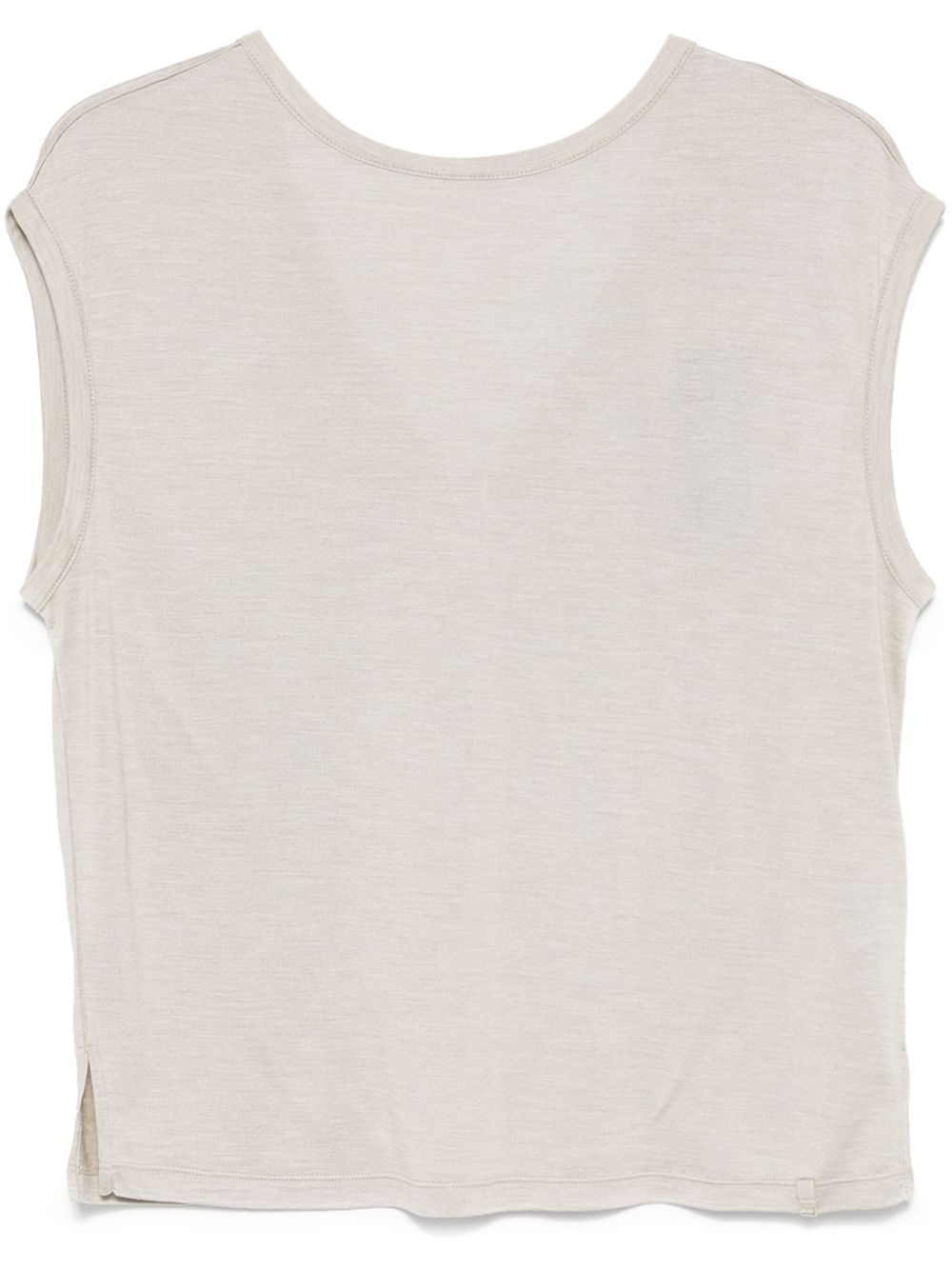logo-plaque top Highlights - Sand beige - Short side slits - V-neck - Sleeveless Imported Composition Silk 70%, Cotton 55%, Polyester 45%, Wool 30% SIZE & FIT Model measurements Height 5 ft 10 in(1.77 m) Bust/Chest 33.07 in(84 cm) Hips 37 in(94 cm) Waist 24.8 in(63 cm) FittingInformation Designed for a relaxed fit, this piece allows for comfort and movement when worn Made from a lightweight non-stretch fabric, this piece offers minimal elasticity when worn