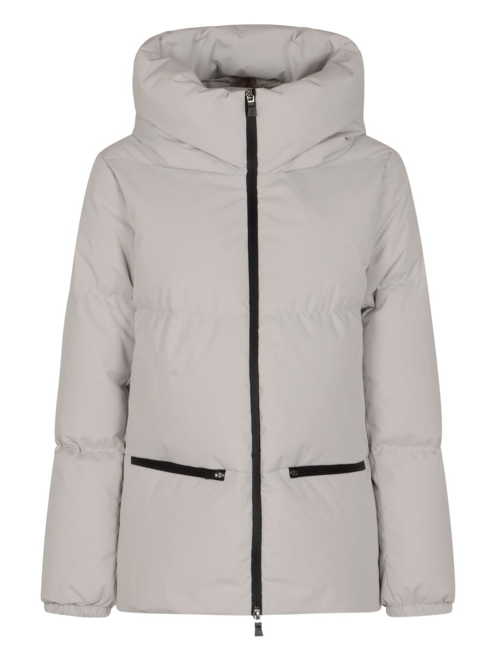 logo-print padded jacket Highlights - Grey - Padded - Hooded neck - Zip fastening - Welt pockets - Logo print Imported Composition Lining: Polyamide 100% Outer: Polyester 100% Washing instructions Read Manufacturer Guidelines