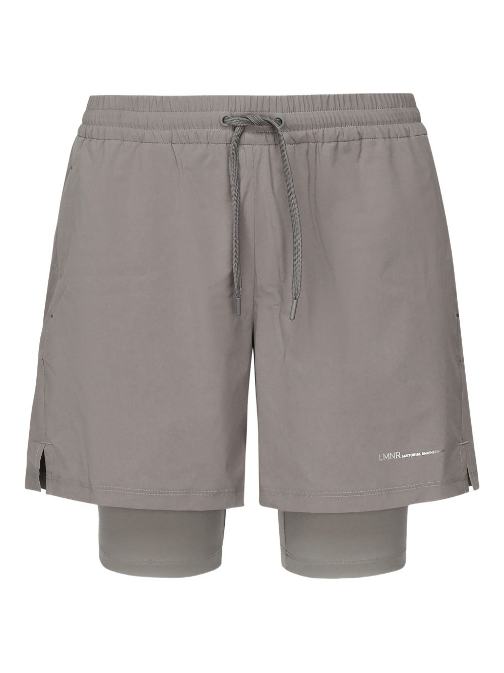 logo-print shorts Highlights - Grey - Drawstring waist - Zip back pocket - Double layer Made in Italy Composition Polyester 85%, Elastane 15% Washing instructions Read Manufacturer Guidelines