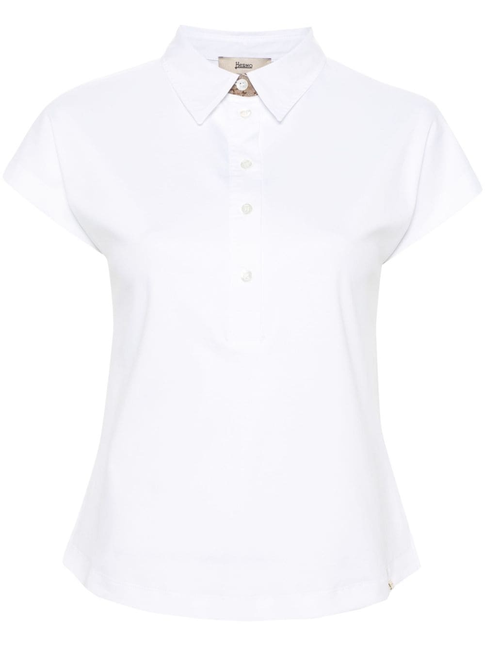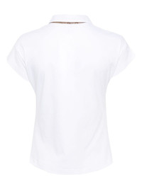 logo-tape cotton polo top Highlights - Optical white - Cotton - Jersey texture - Polo collar with logo-tape detailing - Short sleeves - Front button placket - Gold-tone logo plaque - Short side slits Imported Composition Cotton 100% Outer: Cotton 55%, Polyester 45% Washing instructions Machine Wash