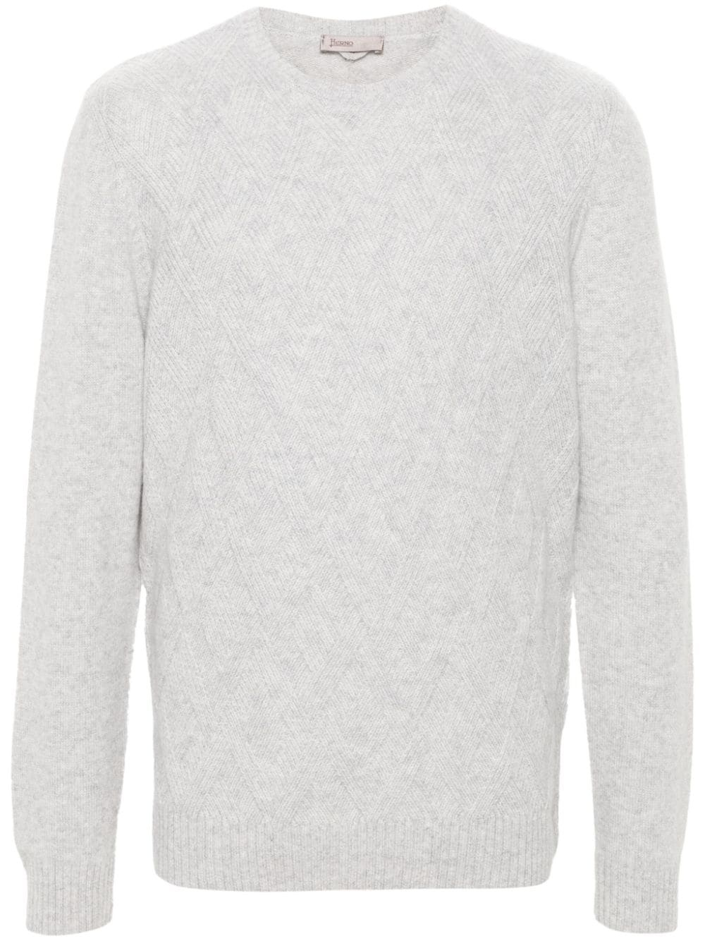 melange cashmere jumper Highlights - Light grey - Wool-cashmere blend - Knitted construction - Diamond pattern - Melange effect - Ribbed crew neck - Long sleeves - Logo plaque at the rear - Ribbed cuffs and hem Imported Composition Wool 90%, Cashmere 10% SIZE & FIT Model measurements Height 6 ft 2 in(1.88 m) Bust/Chest 36.61 in(93 cm) Hips 35.82 in(91 cm) Waist 27.95 in(71 cm) FittingInformation Designed for a relaxed fit, this piece allows for comfort and movement when worn The ribbed hem offers a close, comfortable fit Made with a midweight knit, this piece offers some stretch This piece fits true to size – take your usual size Washing instructions Hand Wash