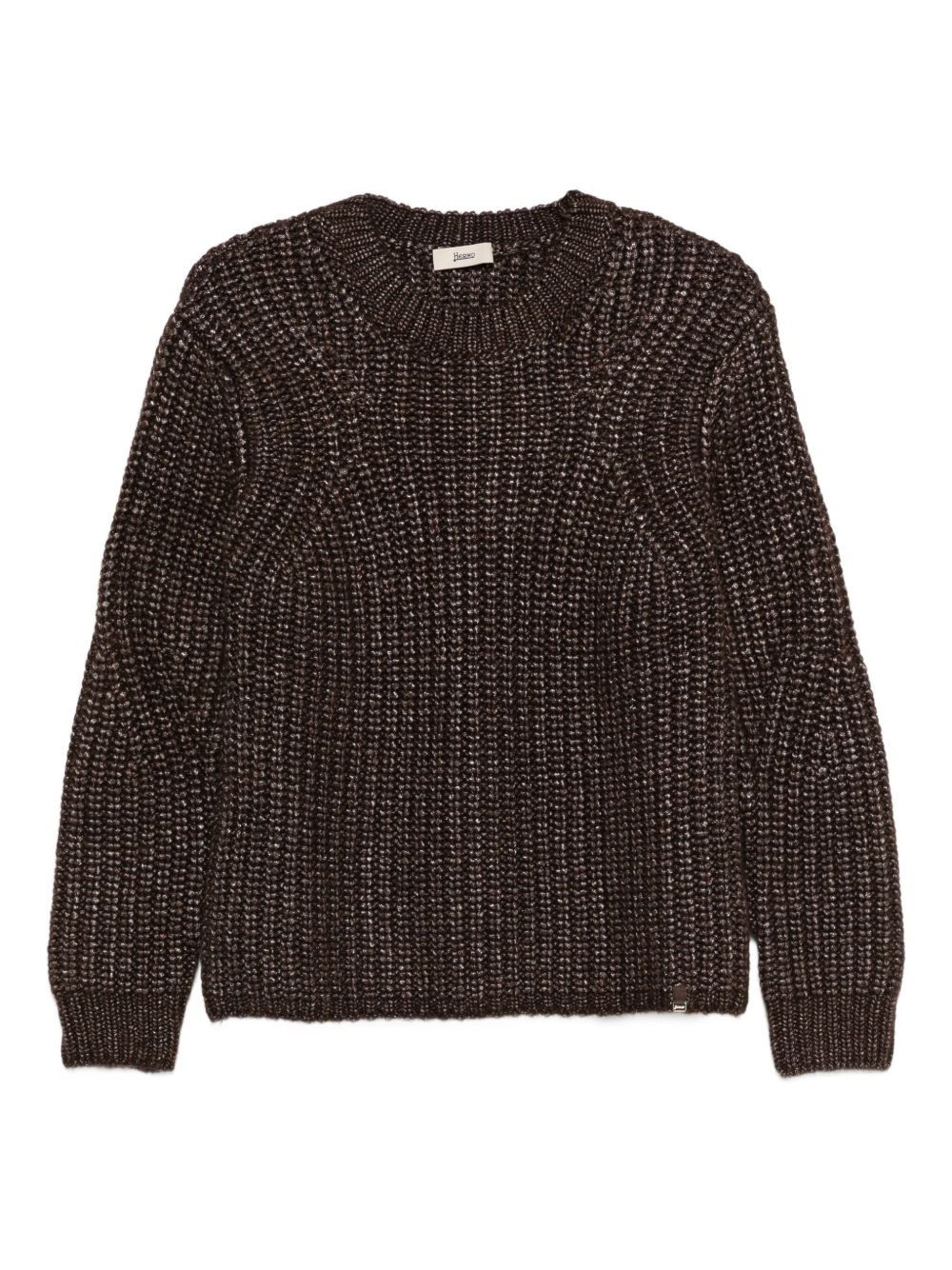 metallic ribbed knit sweater Highlights - Brown - Metallic effect - Ribbed knit - Round neck - Long sleeves - Relaxed fit Made in Italy Composition Wool 44%, Polyamide 30%, Alpaca 26% SIZE & FIT Model measurements Height 5 ft 10 in(1.78 m) Bust/Chest 31.49 in(80 cm) Hips 37 in(94 cm) Waist 23.62 in(60 cm) Washing instructions Hand Wash