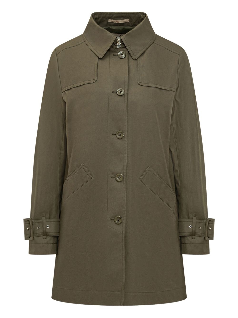 military-inspired button-up jacket Highlights - Olive green - Button fastening - Two front pockets - Wide collar - Back pleat detailing Made in Italy Composition Outer: Cotton 100% Lining: Cotton 100%, Acetate 65%, Polyester 35% Washing instructions Read Manufacturer Guidelines