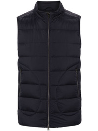 mock-neck down gilet Highlights - Navy blue - Feather down - Padded design - Quilted - Mock neck - Front two-way zip fastening - Sleeveless - Two side zip-fastening pockets - Drawstring hem Imported Composition Outer: Polyamide 100%, Polyurethane 100% Lining: Polyamide 100%, Polyurethane 100%, Feather Down 100% SIZE & FIT Model measurements Height 6 ft 2 in(1.89 m) Bust/Chest 39.76 in(101 cm) Hips 37.4 in(95 cm) Waist 29.92 in(76 cm) FittingInformation Designed for a slim fit, offering a comfortable fit that sits just away from the body Made from a padded non-stretch fabric, giving it no natural elasticity This piece fits true to size – take your usual size