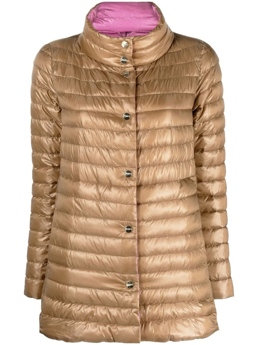 mock-neck quilted jacket light brown feather down quilted mock neck front button fastening long sleeves two side slit pockets straight hem Imported Composition Lining: Feather Down 100%, Polyamide 100% Outer: Polyamide 100% Washing instructions Hand Wash
