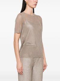 open-knit T-shirt Highlights - Sesame beige - Ribbed cuffs and hem - Lurex detailing - Crew neck Imported Composition Viscose 80%, Cotton 55%, Polyester 45%, Metallic Fibre 20% SIZE & FIT Model measurements Height 5 ft 10 in(1.78 m) Bust/Chest 33.46 in(85 cm) Hips 36.22 in(92 cm) Waist 23.22 in(59 cm) FittingInformation Designed for a relaxed fit, this piece allows for comfort and movement when worn Made with a lightweight knit, this piece offers some stretch