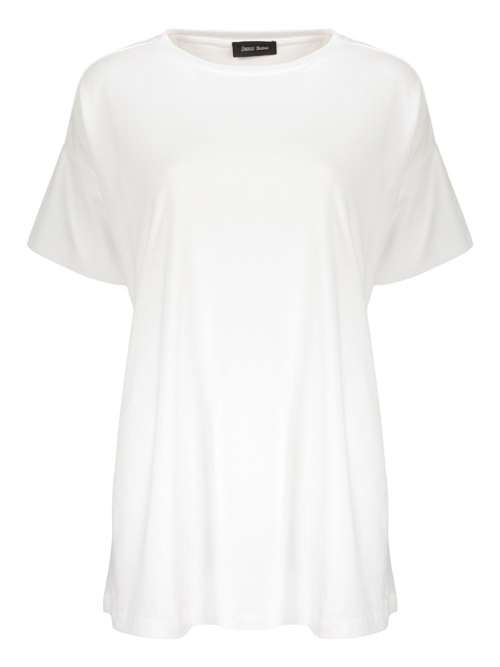 oversized t-shirt with drawstring detail Highlights - White - Short sleeves - Crew neckline - Drawstring waist - Back yoke seam - Relaxed fit Imported Composition Polyester 100%, Cotton 100%