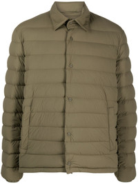 padded button-up jacket Highlights - Light olive green - Goose down blend - Padded design - Classic collar - Front button fastening - Long sleeves - Two side welt pockets Imported Composition Outer: Polyamide 86%, Elastane 14% Lining: Goose Down 70%, Polyester 30% SIZE & FIT Model measurements Height 6 ft 2 in(1.87 m) Bust/Chest 35.82 in(91 cm) Hips 35.43 in(90 cm) Waist 27.95 in(71 cm) FittingInformation Designed for a relaxed fit, this piece allows for comfort and movement when worn Made from a padded stretch fabric, giving it elasticity and a flexible fit This piece fits true to size – take your usual size