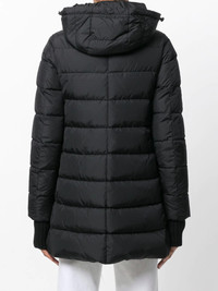 hooded coat Highlights - Black - Padded design - Quilted - Classic hood - High neck - Front two-way zip fastening - Long sleeves - Ribbed cuffs - Straight hem Imported Composition Outer: Polyamide 100% Lining: Nylon 100%, Feather 80%, Down 20% Washing instructions Dry Clean Only