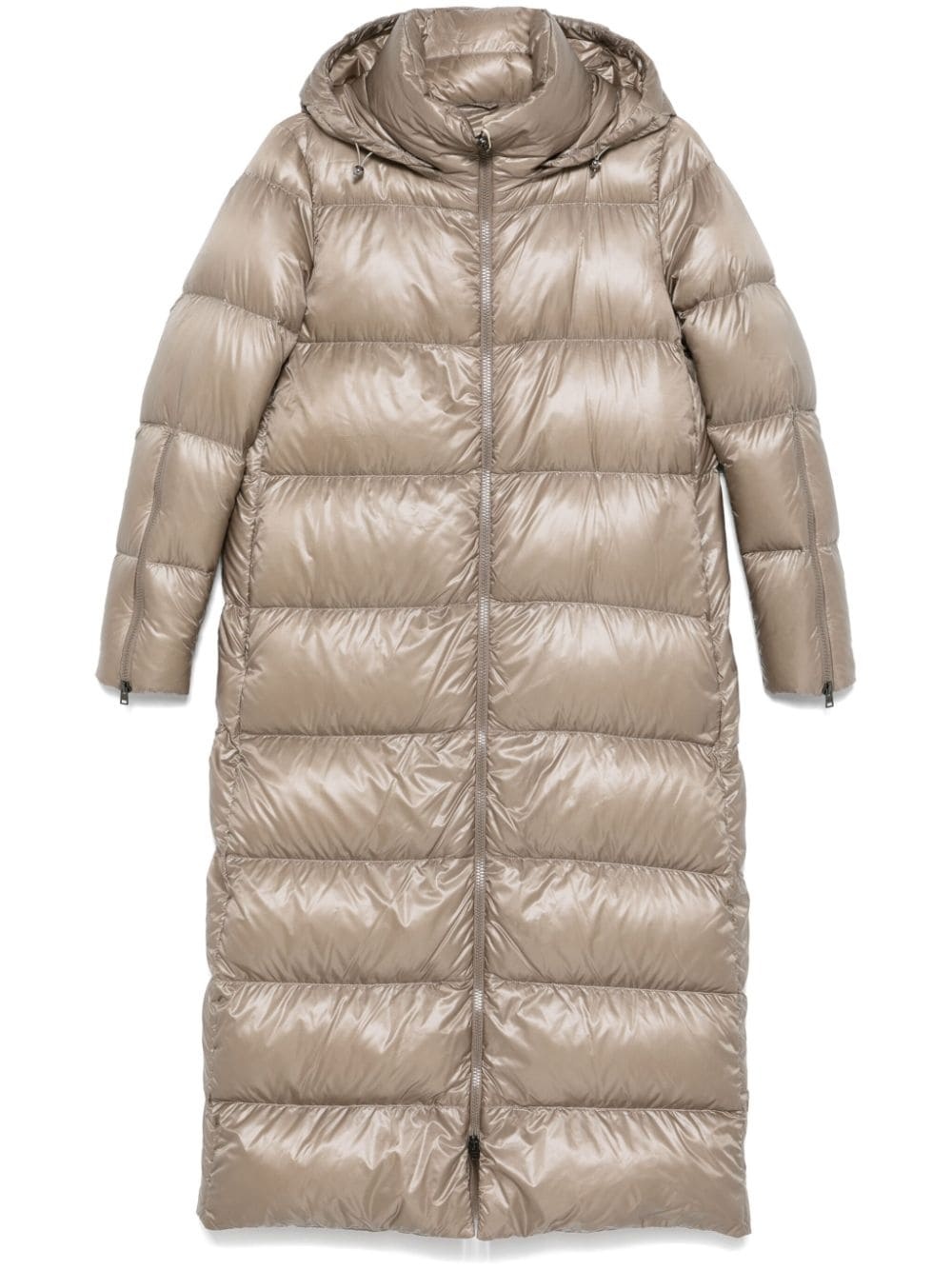 padded coat Highlights - Light brown - Goose down - Padded design - Quilted - Front zip fastening - High neck - Detachable drawstring hood - Long sleeves - Cuff zips - Two side inset pockets - Full lining - Straight hem Imported Composition Lining: Polyamide 100%, Goose Down 90%, Goose Feather 10% Outer: Polyamide 100% SIZE & FIT Model measurements Height 5 ft 11 in(1.8 m) Bust/Chest 33.07 in(84 cm) Hips 37.4 in(95 cm) Waist 25.19 in(64 cm) FittingInformation Designed to be unstructured, offering a loose fit throughout Made from a padded non-stretch fabric, giving it no natural elasticity Washing instructions Hand Wash