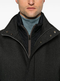 padded coat Highlights - Dark grey - Virgin wool - Padded design - Herringbone - Front press-stud and zip fastening - Stand-up collar - Long sleeves - Two side welt pockets - Quilted lining - Straight hem Made in Italy Composition Lining: Polyamide 100%, Polyester 100%, Polyurethane 100% Outer: Virgin Wool 100%, Polyurethane 100% SIZE & FIT Model measurements Height 6 ft 2 in(1.87 m) Bust/Chest 37.79 in(96 cm) Hips 37.79 in(96 cm) Waist 30.31 in(77 cm) FittingInformation Designed to be unstructured, offering a loose fit throughout The detachable panel offers the preference for a different fit Made from a padded non-stretch fabric, giving it no natural elasticity Washing instructions Dry Clean Only
