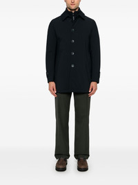 padded coat They say that nothing beats a classic. And by the look of this single-breasted padded jacket from Herno, we'd be inclined to agree. You'll be reaching for this timeless design for years to come. Highlights - Navy blue - Feather down - Detachable collar panel - Concealed front zip fastening - Front button fastening - Classic collar - Long sleeves - Belted cuffs - Two side welt pockets - Central rear vent - Quilted lining - Straight hem Made in Italy Composition Outer: Polyurethane 100%, Polyamide 87%, Spandex/Elastane 13% Lining: Polyamide 100%, Down 80%, Feather 20% SIZE & FIT Model measurements Height 6 ft 2 in(1.87 m) Bust/Chest 37.79 in(96 cm) Hips 37.79 in(96 cm) Waist 30.31 in(77 cm) FittingInformation Designed for a slim fit, offering a comfortable fit that sits just away from the body The vented hem offers movement at the rear Made from a padded stretch fabric, giving it elasticity and a flexible fit