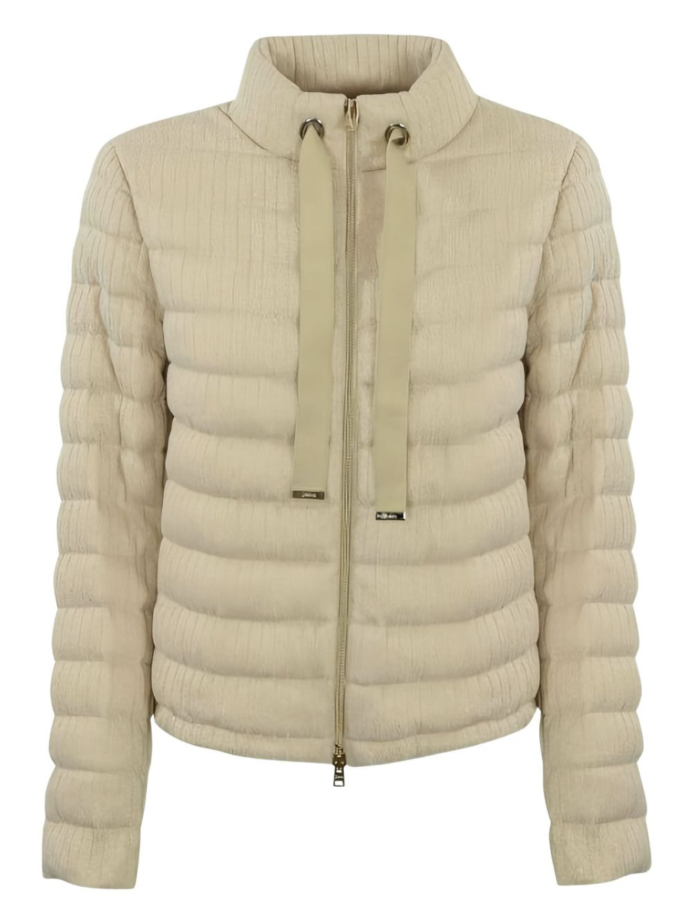padded high-neck jacket Highlights - Beige - Padded design - High neck - Zip fastening - Drawstring hem - Metallic zipper pulls Imported Composition Viscose 100%, Lurex 100% Washing instructions Read Manufacturer Guidelines