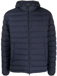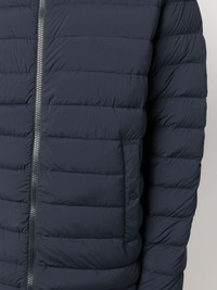 padded hooded jacket Highlights - Navy blue - Goose down blend - Padded design - Classic hood - Front two-way zip fastening - Long sleeves - Two side welt pockets - Straight hem Imported Composition Lining: Polyamide 100%, Goose Down 70%, Polyester 30% Outer: Polyamide 86%, Elastane 14% SIZE & FIT Model measurements Height 6 ft 2 in(1.87 m) Bust/Chest 35.82 in(91 cm) Hips 35.43 in(90 cm) Waist 27.95 in(71 cm)