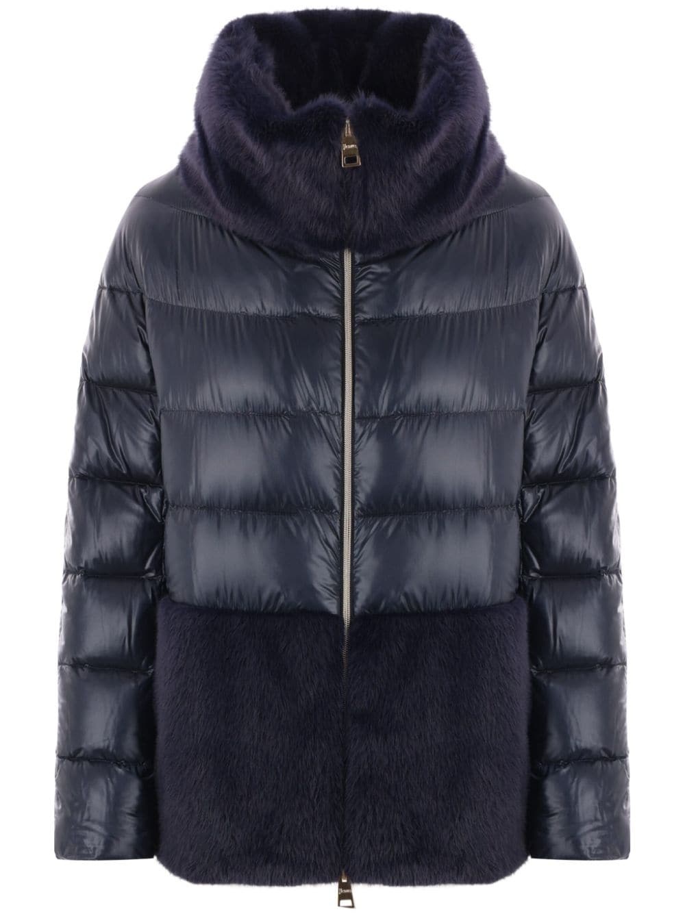 padded jacket Highlights - Navy blue - Goose down - Padded design - Quilted panels - Faux-fur detailing - Stand-up collar - Long sleeves - Two side inset pockets - Straight hem - Full lining - Front two-way zip fastening Made in Italy Composition Lining: Polyamide 100%, Goose Down 90%, Goose Feather 10% Outer: Polyamide 100%, Polyester 100%
