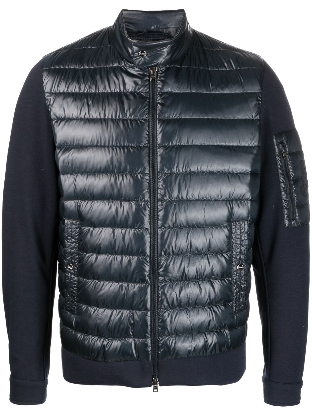 padded-panel zipped jacket Highlights - Navy blue - Goose down/cotton - Padded panels - Front zip fastening - Long sleeves - Sleeve zip pocket - Two front welt pockets Imported Composition Outer: Polyamide 100%, Polyester 60%, Cotton 40% Lining: Goose Down 100%, Polyamide 100% SIZE & FIT Model measurements Height 6 ft 0 in(1.84 m) Bust/Chest 36.22 in(92 cm) Hips 35.43 in(90 cm) Waist 26.77 in(68 cm) FittingInformation Designed for a slim fit, offering a comfortable fit that sits just away from the body The adjustable tabs allow for fitted preferences Made from a midweight non-stretch fabric, this piece offers minimal elasticity when worn This piece fits true to size – take your usual size Washing instructions Dry Clean Only