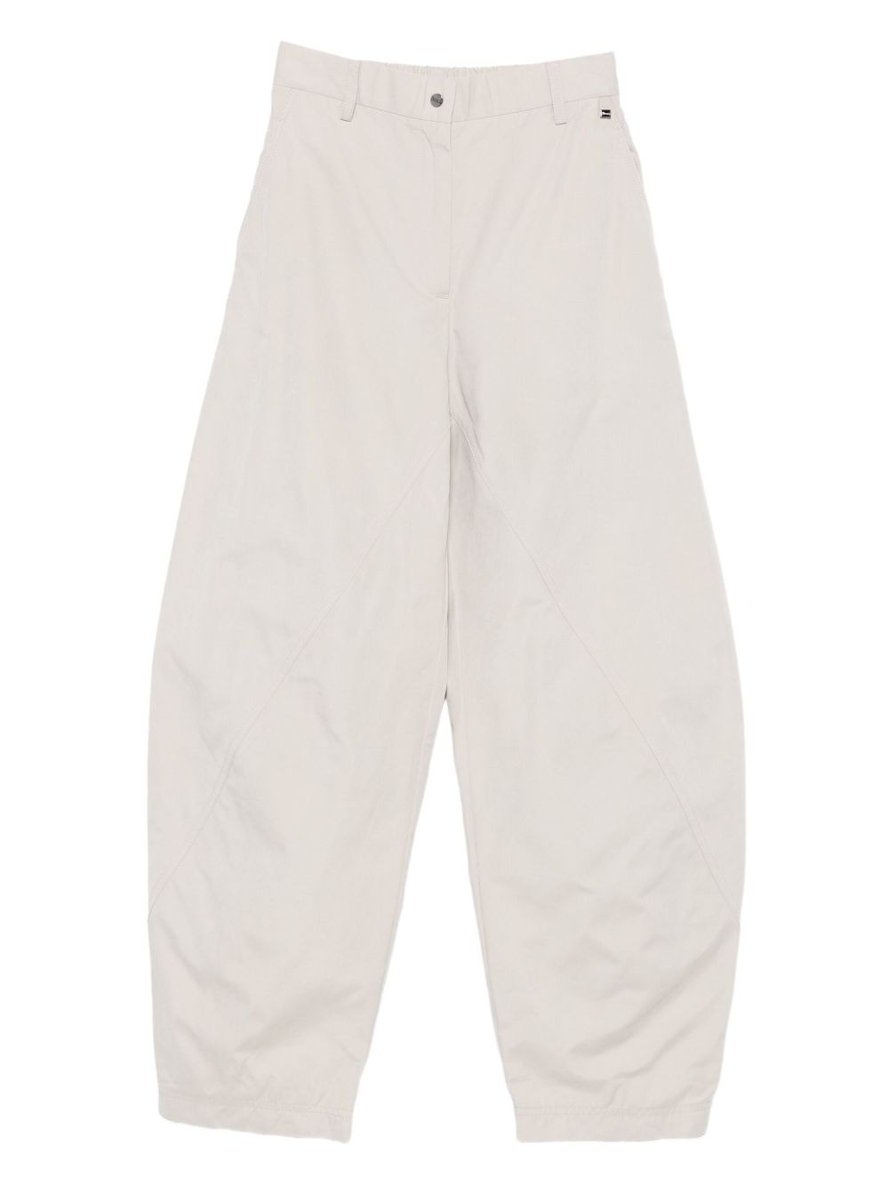 panelled elasticated-waist pants Highlights - White - Elasticated waistband - Cuffed hems - Straight leg - Diagonal panelling - Button fly Made in Italy Composition Cotton 45%, Polyester 39%, Polyamide 16% SIZE & FIT Model measurements Height 5 ft 9 in(1.76 m) Bust/Chest 31.49 in(80 cm) Hips 35.03 in(89 cm) Waist 24.8 in(63 cm) Washing instructions Read Manufacturer Guidelines