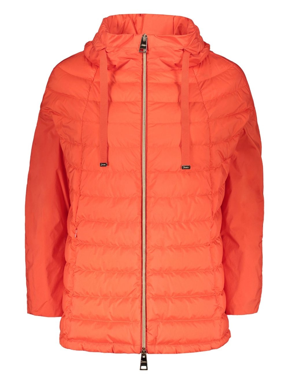 panelled puffer jacket Highlights - Lava orange - Front two-way zip fastening - Drawstring hood - Two side zip-fastening pockets - Drawstring hem Imported Composition Outer: Polyurethane 100%, Polyamide 100%, Cotton 55%, Polyester 45% Lining: Goose Down 90%, Goose Feather 10% Washing instructions Dry Clean Only