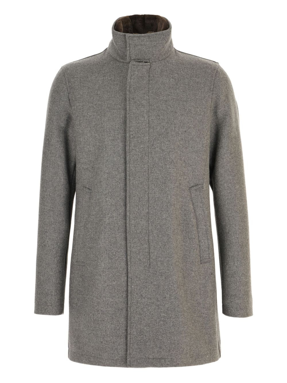 patch-pocket coat Highlights - Grey - Concealed fastening - Welt pockets - Straight hem - Long sleeves Imported Composition Virgin Wool 100% Washing instructions Read Manufacturer Guidelines
