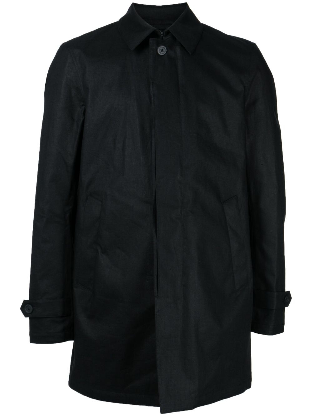 plain linen shirt jacket Highlights - Jet black - Linen/flax - Classic collar - Concealed front fastening - Two front pouch pockets - Long sleeves - Cuff sleeves - Rear slit - Straight hem Made in Italy Composition Linen/Flax 100%, Polyester 100%