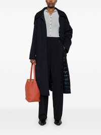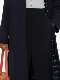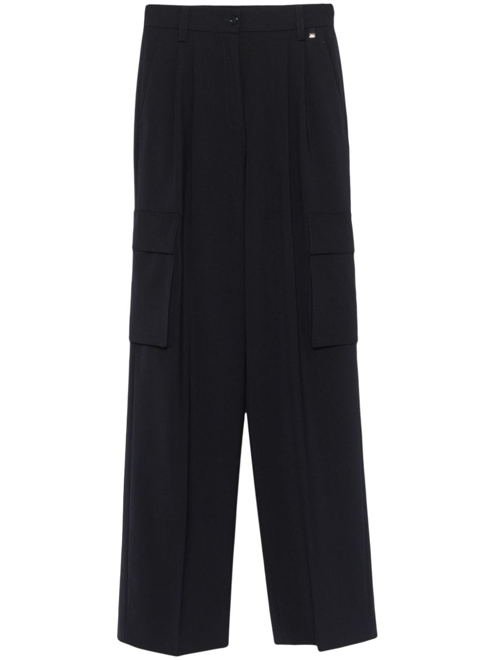 pleated trousers Highlights - Navy blue - Textured finish - Pleat detailing - Front button and zip fastening - Belt loops - Two side slash pockets - Pressed crease - Two side flap pockets - Rear elasticated waistband - Two rear welt pockets - Straight leg Made in Italy Composition Polyester 53%, Virgin Wool 43%, Elastane 4% SIZE & FIT Model measurements Height 5 ft 11 in(1.8 m) Bust/Chest 31.49 in(80 cm) Hips 36.61 in(93 cm) Waist 24.4 in(62 cm) FittingInformation Designed with a wide-leg cut, these trousers allow for a close fit at the waist and offer a loose and roomy fit over the leg The partially elasticated waistband offers increased movement and comfort at the waist Made from a midweight stretch fabric, this piece offers elasticity and flexibility when worn