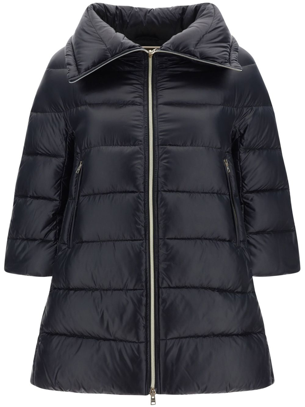 Cleofe coat Highlights - Black - Down-feather filling - Two-way zip fastening - Padded design - Glossy finish - Quilted finish - Spread collar - Three-quarter length sleeves - Two side zip-fastening pockets - A-line - Straight hem Imported Composition Lining: Feather Down 100%, Polyamide 100% Outer: Polyamide 100% Washing instructions Hand Wash