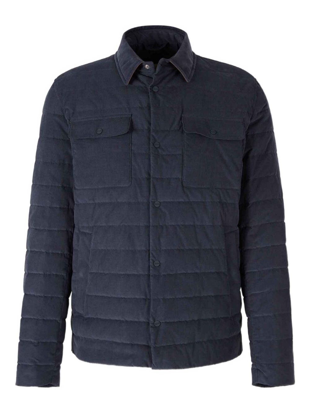 quilted jacket Highlights - Navy blue - Front snap fastening - Two chest pockets - Long sleeves Imported Composition Down 100% Outer: Polyamide 100% Washing instructions Read Manufacturer Guidelines