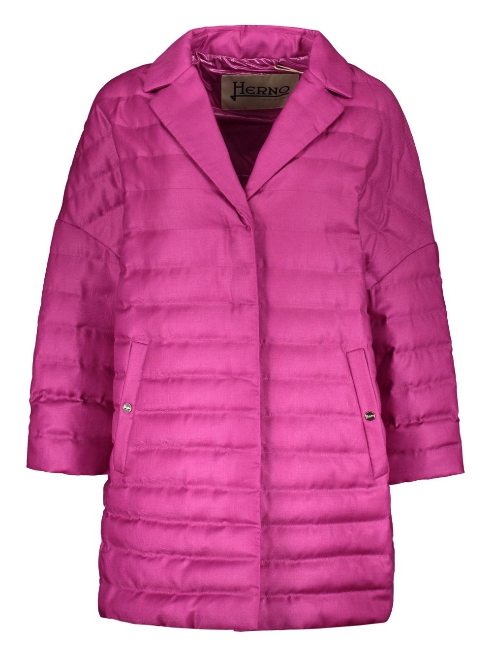 quilted puffer coat Highlights - Fuchsia pink - Concealed press-stud fastening - Two press-stud fastening side pockets - Drop shoulder - Long sleeves Made in Italy Composition Outer: Polyamide 100%, Wool 70%, Silk 30% Lining: Goose Down 90%, Goose Feather 10%