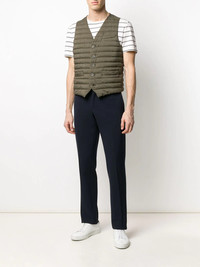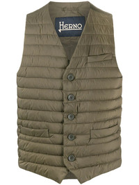 quilted V-neck gilet Military green quilted V-neck gilet from Herno featuring a front button fastening, a sleeveless design, a chest pocket, two front pockets, a straight hem and a short length. Imported Composition Outer: Polyimide 100% Lining: Polyimide 100% SIZE & FIT Model measurements Height 6 ft 2 in(1.89 m) Bust/Chest 37.79 in(96 cm) Hips 37 in(94 cm) Waist 29.92 in(76 cm) FittingInformation This piece fits true to size. We recommend you get your regular size Cut for a slim fit Made with a lightweight non-stretch fabric Washing instructions Dry Clean Only