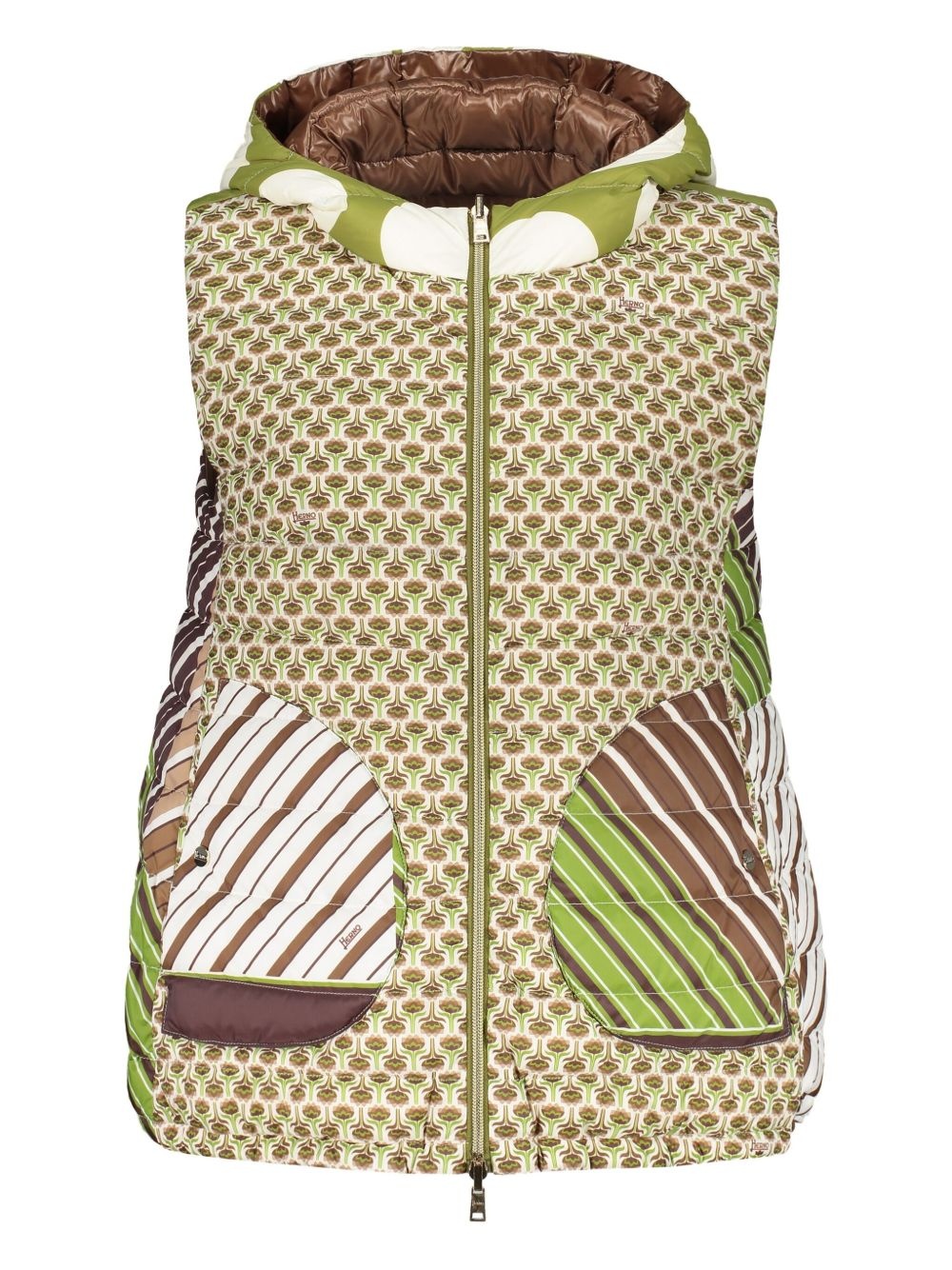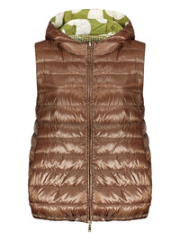 reversible down gilet Highlights - Chocolate brown - Front two-way zip fastening - Two front pouch pockets - Classic hood - Panelled design Imported Composition Outer: Polyamide 100% Lining: Goose Down 90%, Goose Feather 10% Washing instructions Dry Clean Only