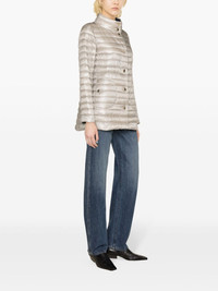 reversible goose-down puffer jacket Highlights - Navy blue/beige - Goose down - Padded design - Funnel neck - Front press-stud fastening - Long sleeves - Two side inset pockets - Straight hem - Contrast lining - Reversible Imported Composition Lining: Goose Down 100%, Polyamide 100% Outer: Polyamide 100% SIZE & FIT Model measurements Height 5 ft 10 in(1.79 m) Bust/Chest 31.49 in(80 cm) Hips 35.03 in(89 cm) Waist 23.62 in(60 cm) FittingInformation Designed for a relaxed fit, this piece allows for comfort and movement when worn Made from a padded non-stretch fabric, giving it no natural elasticity This piece fits true to size – take your usual size