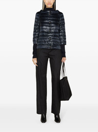 reversible quilted jacket Highlights - Blue/grey - Down-feather filling - Quilted - Reversible - Round neck - Logo-engraved buttons - Front press-stud fastening - Three-quarter length sleeves - Two side inset pockets - Straight hem Made in Italy Composition Lining: Polyamide 100%, Goose Down 90%, Goose Feather 10% Outer: Polyamide 100% Washing instructions Hand Wash