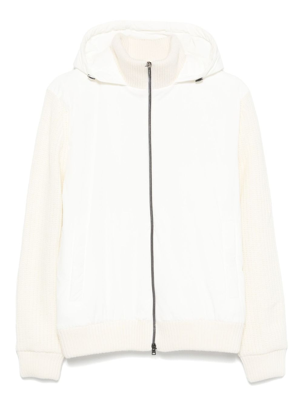 rib-knit jacket Highlights - White - Hooded neck - Zip fastening - Ribbed cuffs - Ribbed hem Imported Composition Outer: Virgin Wool 100%, Polyurethane 100%, Polyamide 86%, Elastane 14% Lining: Polyester 100%, Cotton 100% Washing instructions Hand Wash