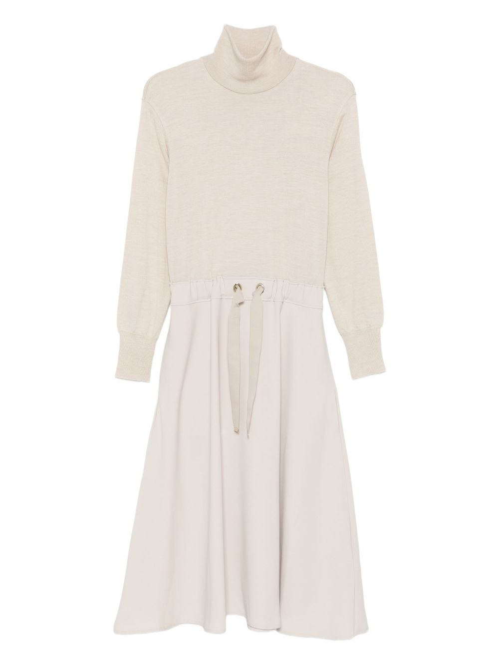 roll-neck tie dress Highlights - Light beige - Roll neck - Long sleeves - Tie detailing - Gathered waist - A-line skirt Imported Composition Fabric 100% SIZE & FIT Model measurements Height 5 ft 11 in(1.8 m) Bust/Chest 30.7 in(78 cm) Hips 35.23 in(89.5 cm) Waist 25.19 in(64 cm) Washing instructions Read Manufacturer Guidelines