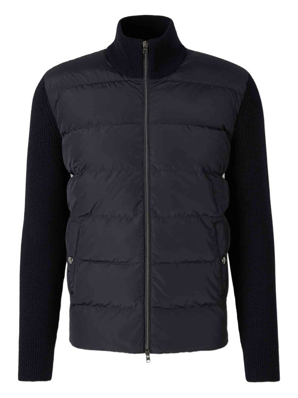 round neck ribbed sweater Highlights - Black - Padded front - Ribbed knit - High neck - Zip fastening - Side pockets - Ribbed cuffs Made in Italy Composition Wool 80%, Polyamide 20%