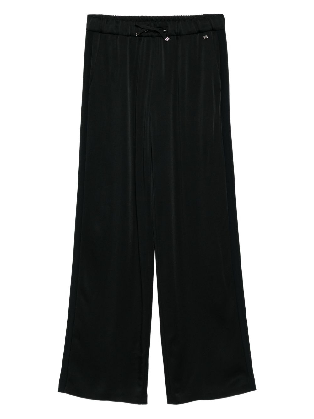 satin drawstring trousers Highlights - Black - Elasticated waistband - Two side slash pockets Imported Composition Lining: Acetate 65%, Polyester 35% Outer: Acetate 72%, Viscose 28% SIZE & FIT Model measurements Height 5 ft 10 in(1.77 m) Bust/Chest 30.31 in(77 cm) Hips 34.25 in(87 cm) Waist 25.19 in(64 cm) FittingInformation Designed with a wide-leg cut, these trousers allow for a close fit at the waist and offer a loose and roomy fit over the leg The elasticated waist allows for a comfortable fit Made from a lightweight non-stretch fabric Washing instructions Dry Clean Only