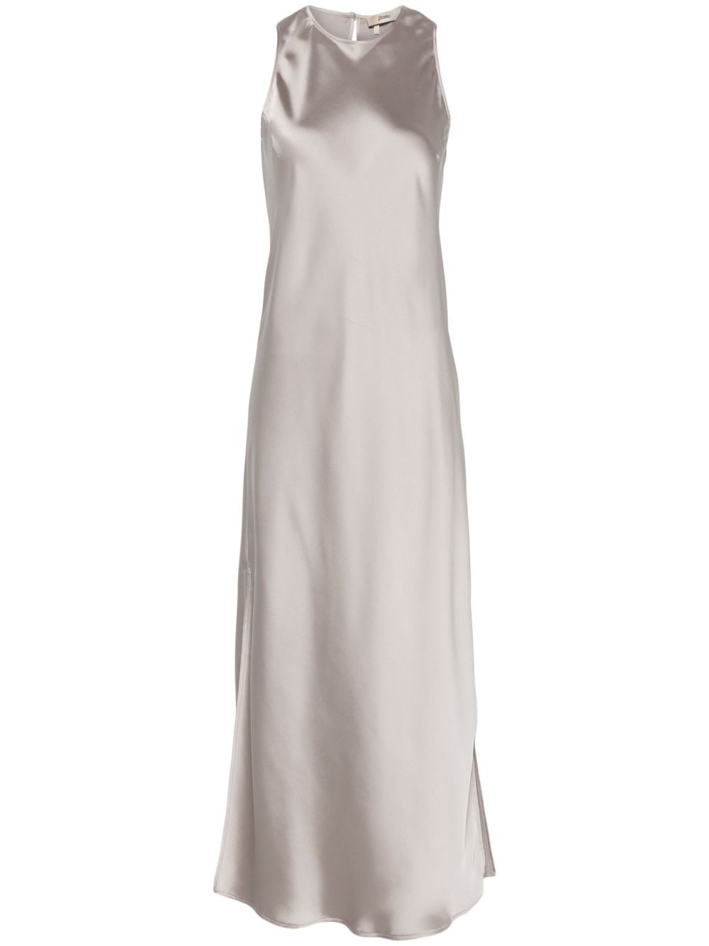 satin maxi dress Highlights - Taupe - Single rear button fastening - Crew neck - Sleeveless - Side slits Made in Italy Composition Polyester 100% SIZE & FIT Model measurements Height 5 ft 10 in(1.77 m) Bust/Chest 31.88 in(81 cm) Hips 36.22 in(92 cm) Waist 24.01 in(61 cm) FittingInformation Designed for a slim fit that sits just away from the body offering a close yet comfortable fit Made from a lightweight non-stretch fabric