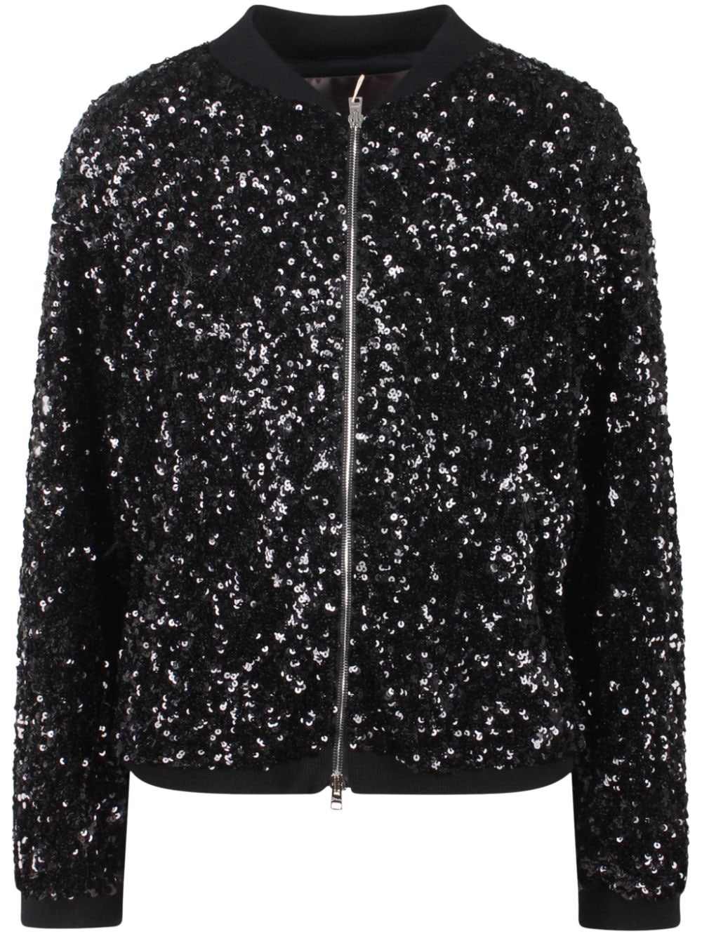 sequin-embellished bomber jacket Highlights - Black - Sequin embellishment - Front two-way zip fastening - Ribbed band collar - Drop shoulder - Long sleeves - Ribbed cuffs and hem - Two side slit pockets - Full lining - This piece features very delicate detailing. handle with extreme care to avoid damage such as broken feathers or loss of sequins. Imported Composition Polyester 95%, Spandex/Elastane 5% SIZE & FIT FittingInformation Designed for a relaxed fit, this piece allows for comfort and movement when worn The elasticated waist allows for a comfortable fit Made from a midweight non-stretch fabric Washing instructions Read Manufacturer Guidelines