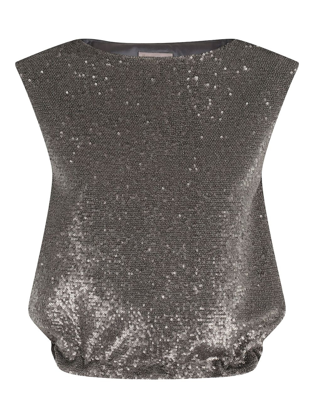 sequin-embellished drawstring top Highlights - Grey - Sequin embellishment - Drawstring hem - Sleeveless - Boat neck Imported Composition Polyester 100% Washing instructions Read Manufacturer Guidelines
