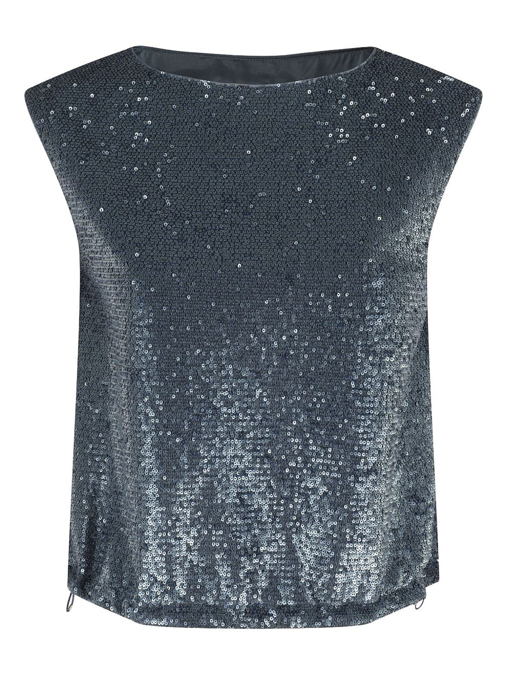 sequin-embellished sleeveless top Highlights - Blue grey - Sequin embellishment - Sleeveless - Round neck - Drawstring hem Imported Composition Polyester 100% Washing instructions Read Manufacturer Guidelines