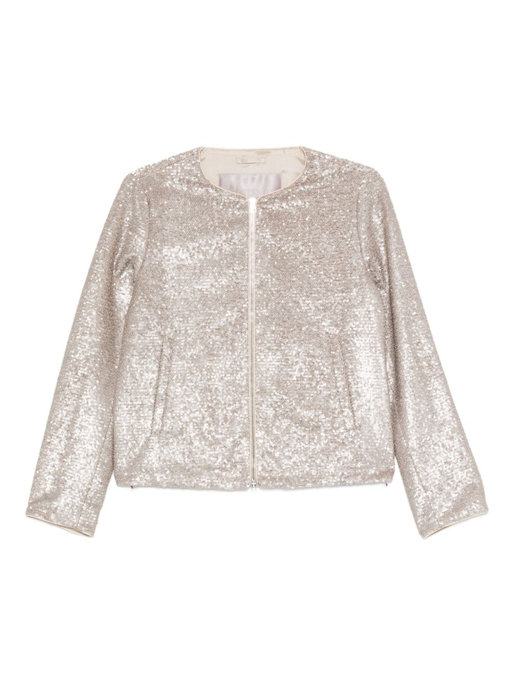 sequinned zip-up jacket Highlights - Champagne beige - Sequin embellishment - Zip fastening - Long sleeves - Round neck - Straight hem Imported Composition Outer: Polyester 100%, Sequin 100% Lining: Acetate 65%, Polyester 35% SIZE & FIT Model measurements Height 5 ft 9 in(1.75 m) Bust/Chest 32.67 in(83 cm) Hips 36.22 in(92 cm) Waist 24.8 in(63 cm) Washing instructions Read Manufacturer Guidelines