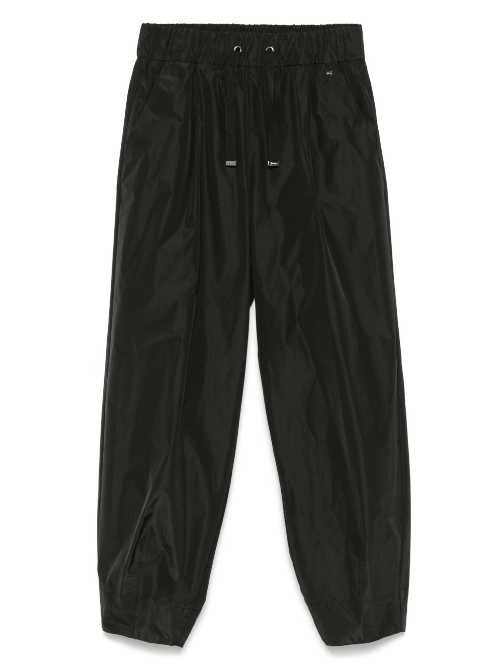 taffeta trousers Highlights - Black - Elasticated drawstring waistband - Two diagonal pockets to the sides - Pleat detailing Imported Composition Polyester 100% SIZE & FIT Model measurements Height 5 ft 10 in(1.79 m) Bust/Chest 33.07 in(84 cm) Hips 35.82 in(91 cm) Waist 24.01 in(61 cm) FittingInformation Designed for a tapered fit, these trousers allow for a close fit at the waist and a loose unrestricted fit over the leg with a closer fit towards the ankle Cropped in length Made from a lightweight non-stretch fabric